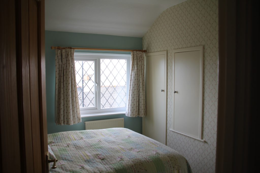 Smaller of the 2 bedrooms but cosy and bright a Double bed, cupboard wardrobe, bedside tables and drawer unit